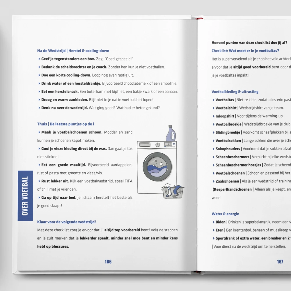 Het is geen standaard boek. Het is een combinatie van leren, doen, denken én herinneren. Je bewaart het als een persoonlijk document van jouw ontwikkeling als voetballer. Een uniek naslagwerk dat je later met plezier terug zal lezen.
