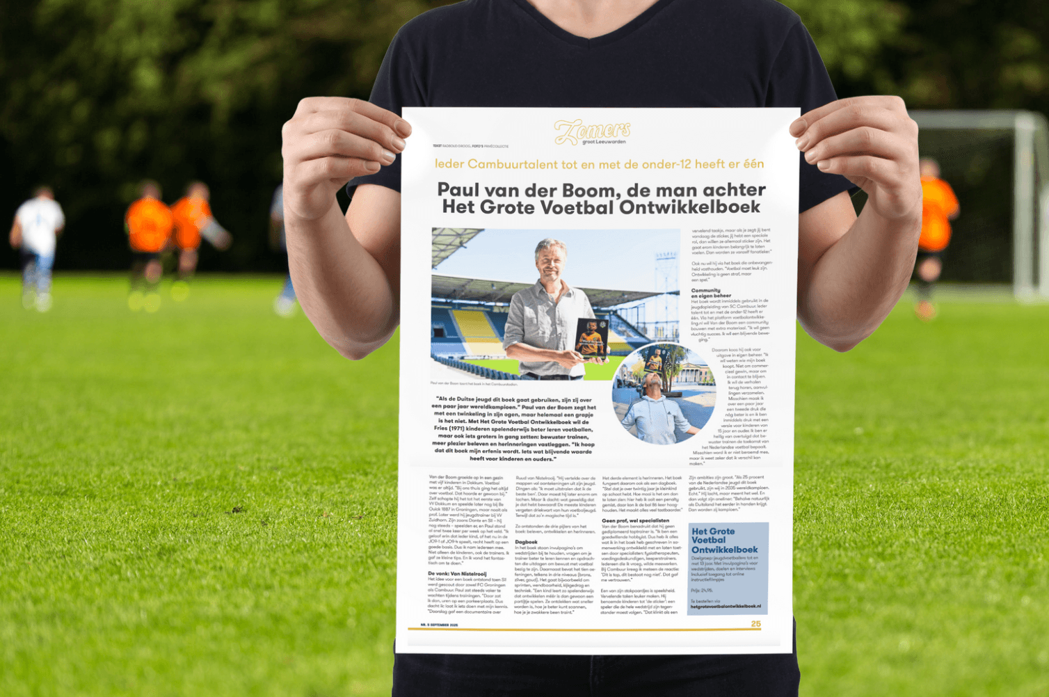 In de nieuwste editie van Zomers Groot Leeuwarden verscheen een uitgebreid interview met Paul van der Boom, de maker van Het Grote Voetbal Ontwikkelboek. In het gesprek vertelt hij hoe een idee aan de keukentafel uitgroeide tot een compleet ontwikkelboek dat inmiddels in gebruik is bij meerdere clubs en voetbalscholen in Noord-Nederland.